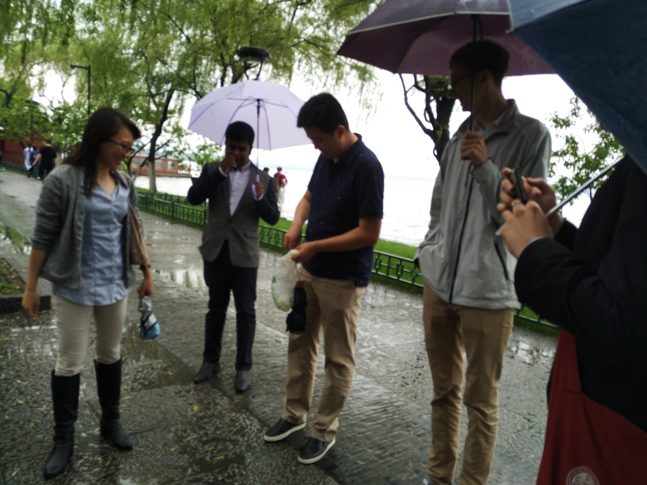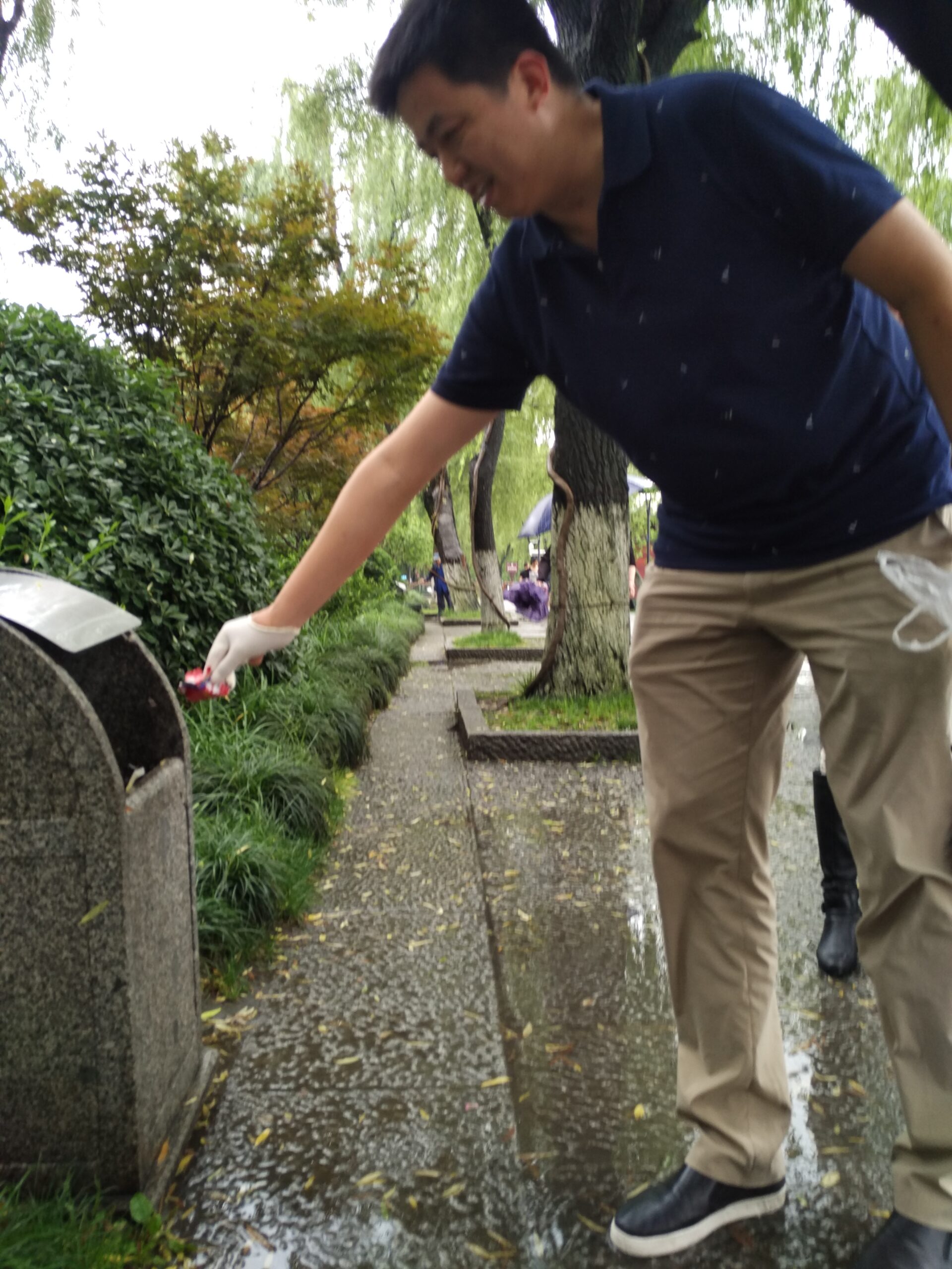 2016 年,我们的首批项目之一;一些社团成员和志愿者聚集在杭州西湖附近捡垃圾,以改善这一自然风景优美的地区的环境